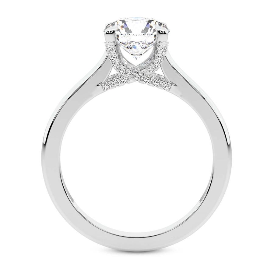 This Lucy Criss Cross Prong Solitaire Diamond Ring is a Round shape ring Engagement type 18k White Gold