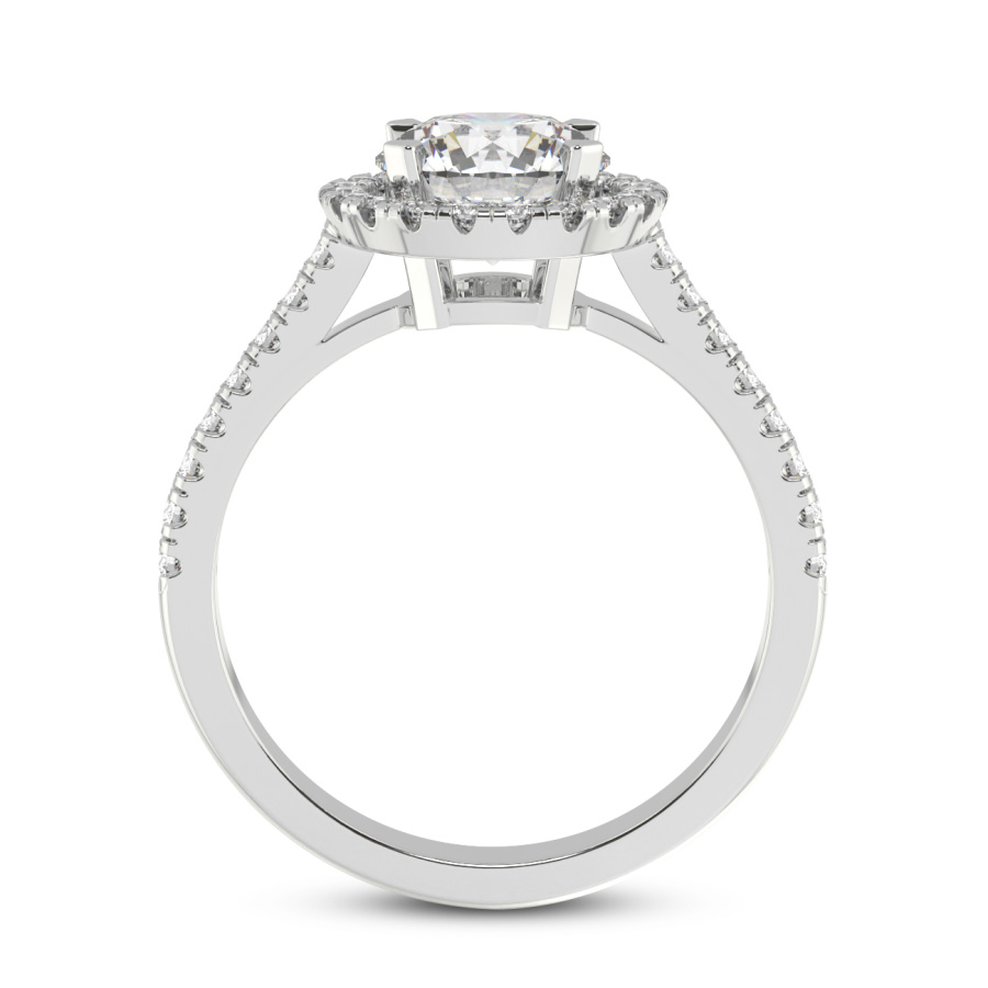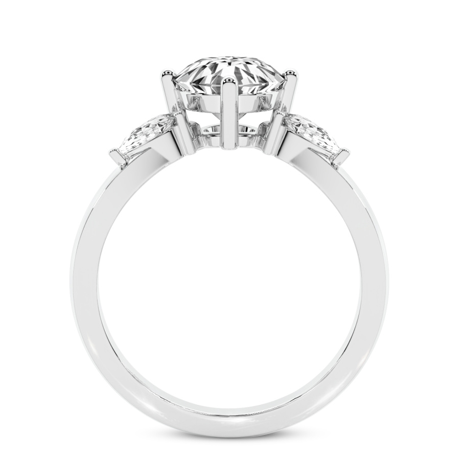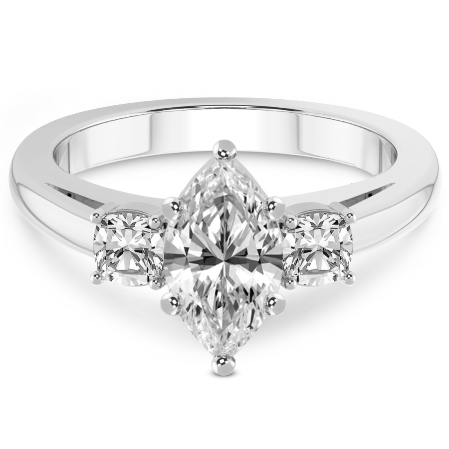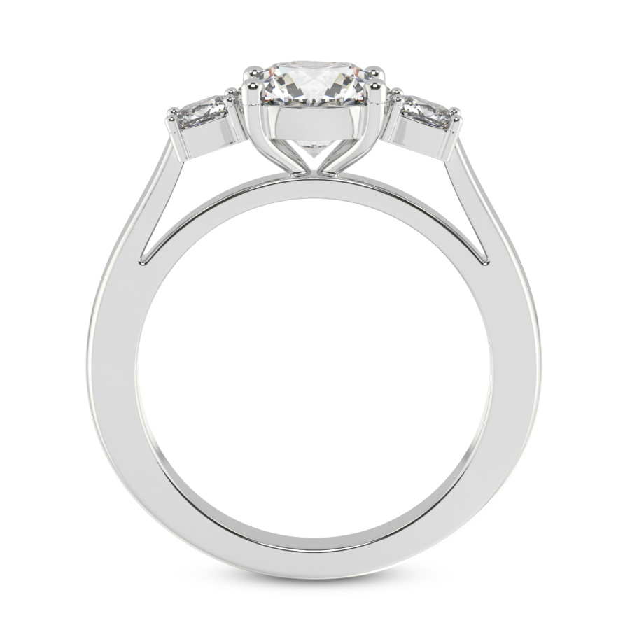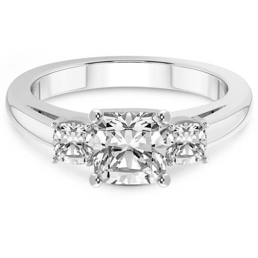 This Maya Three Stone Side Cushion Diamond Ring is a Round shape ring Engagement type 18k White Gold