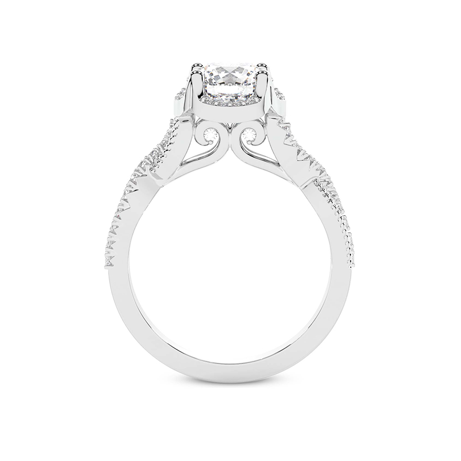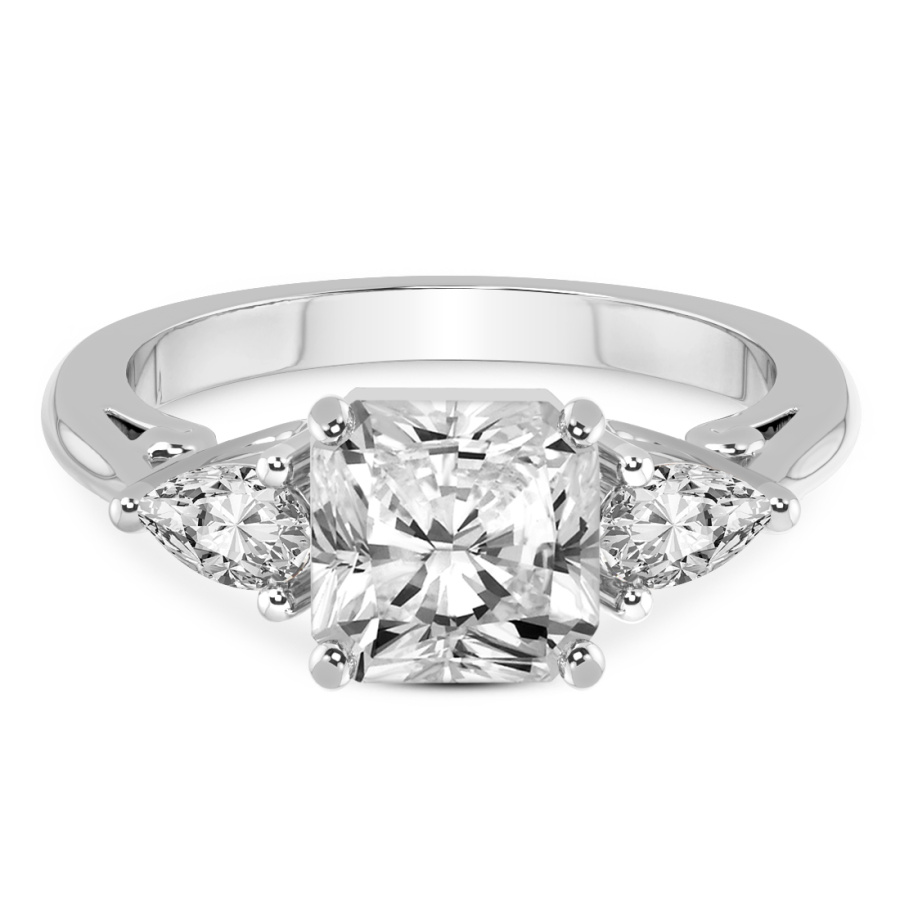 This Mélanie Three Stone Side Pear Diamond Ring is a Round shape ring Engagement type 18k White Gold