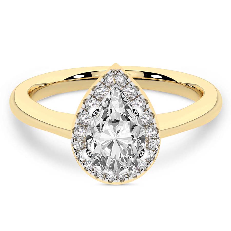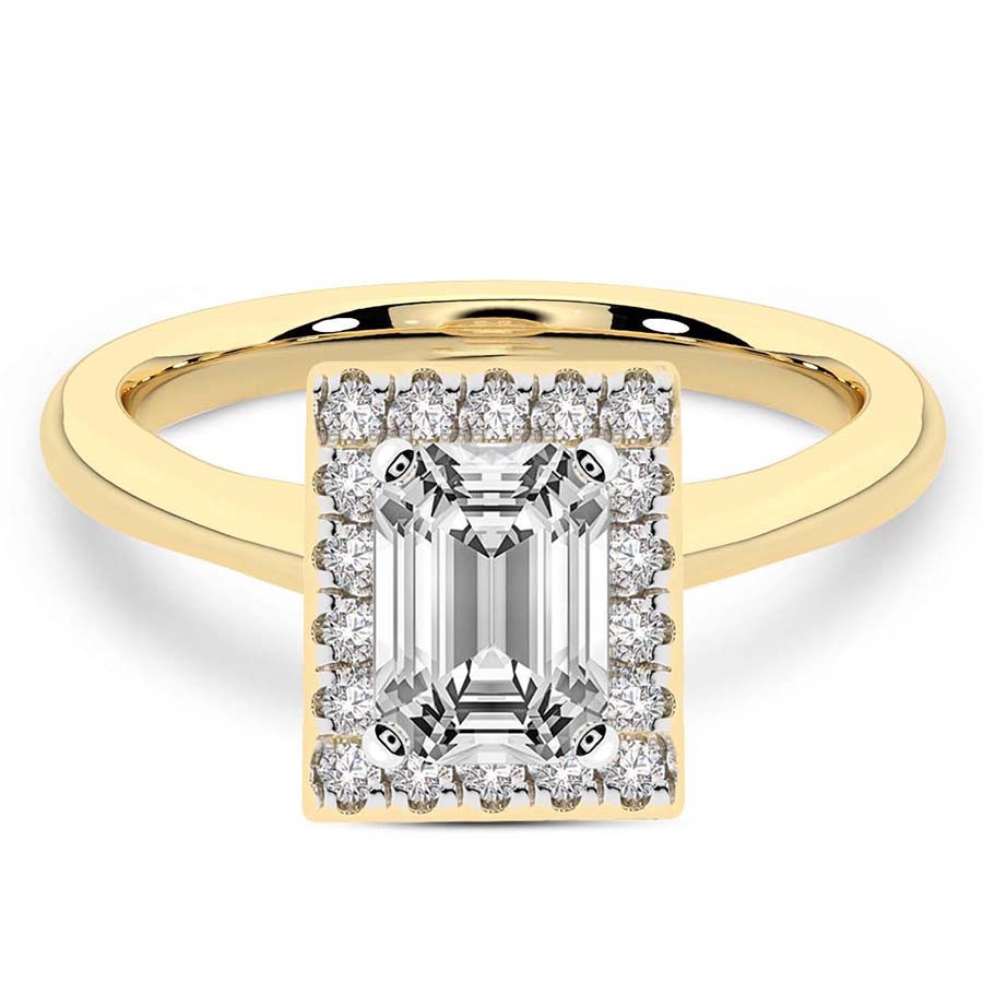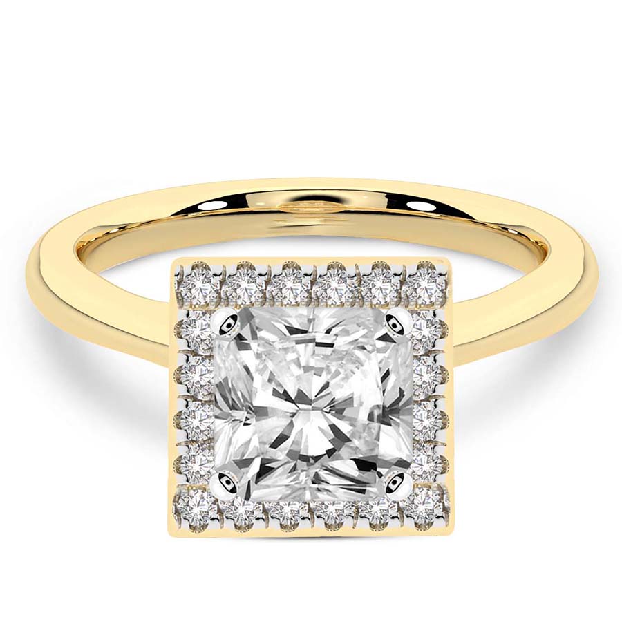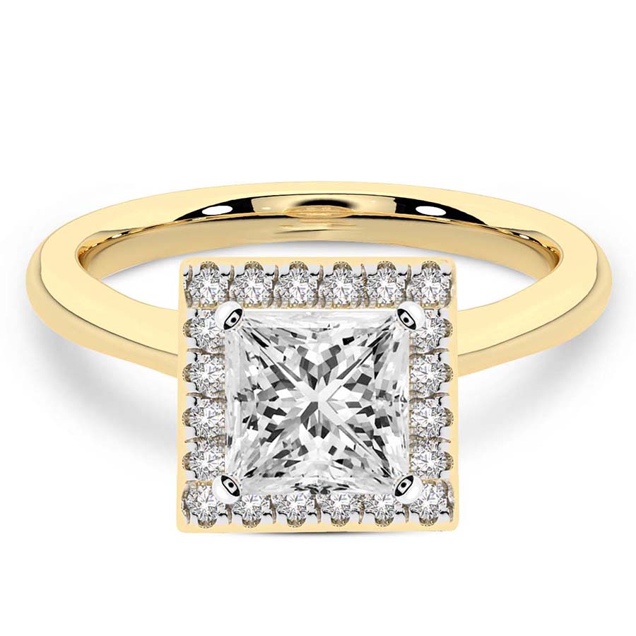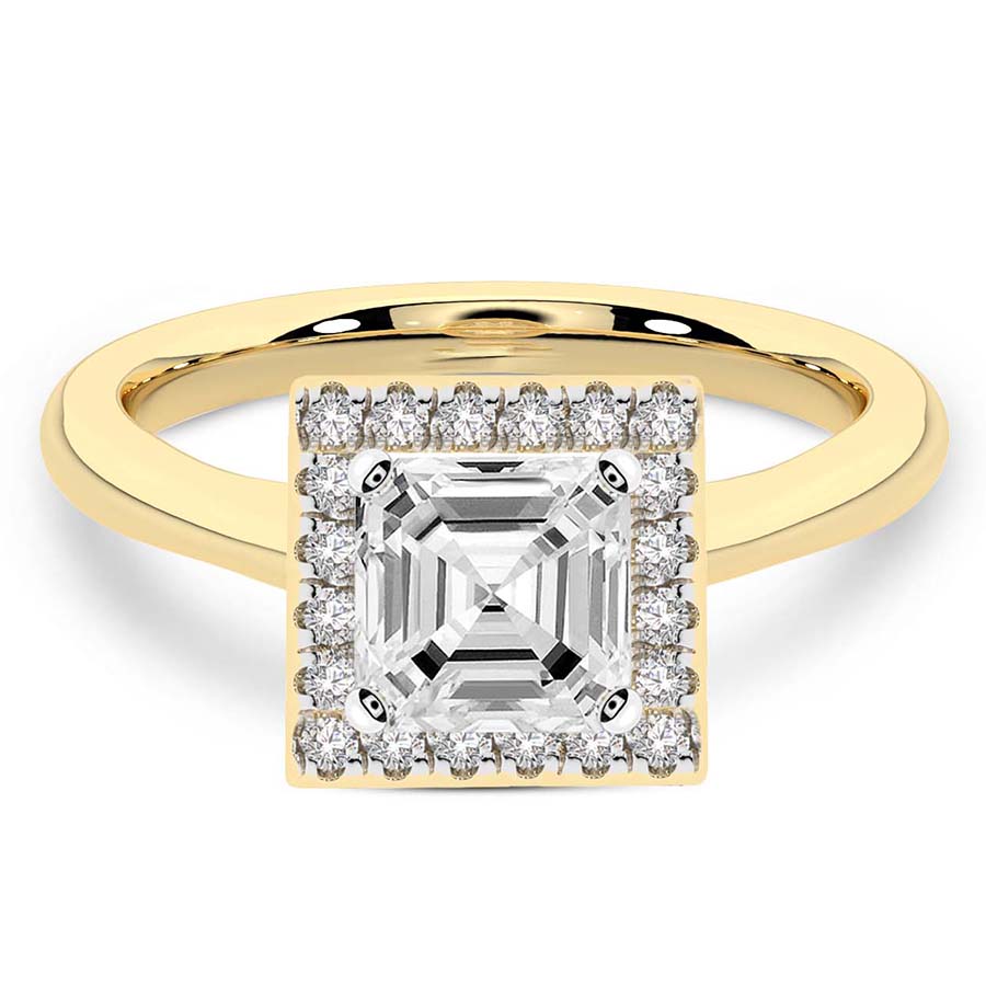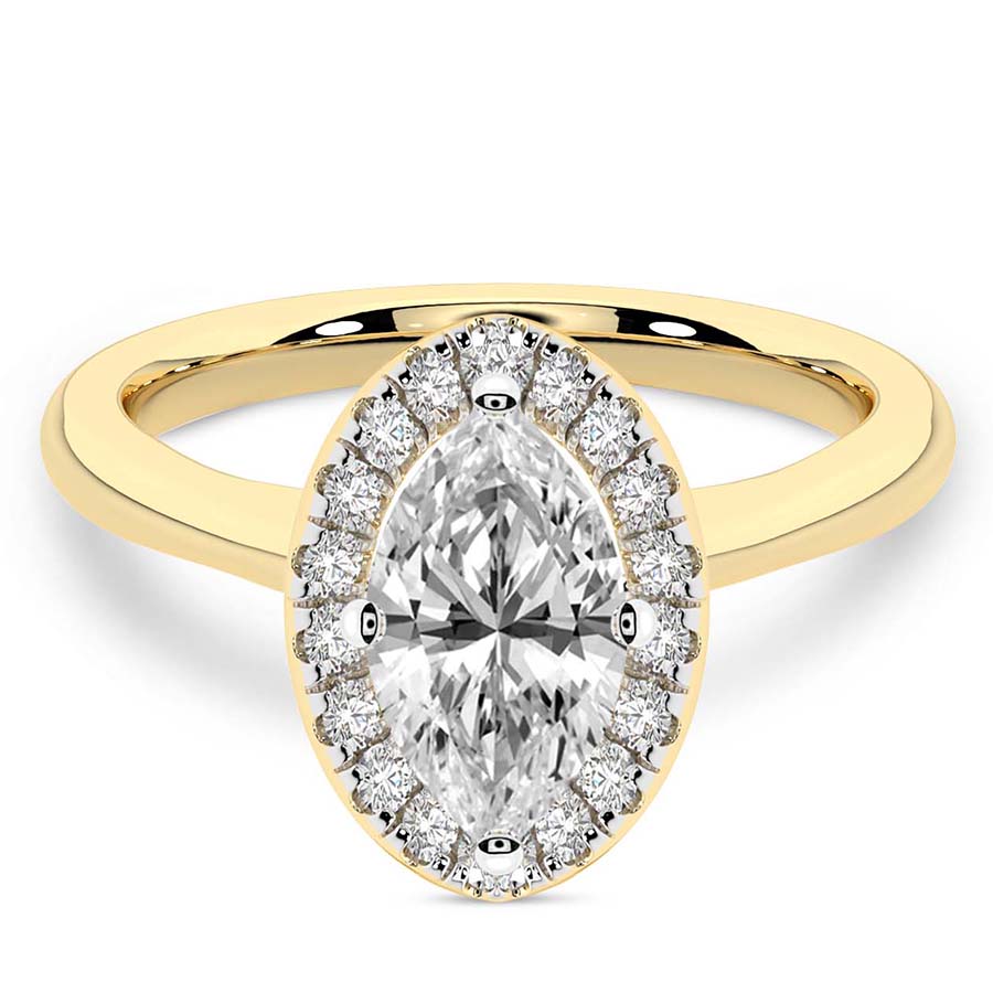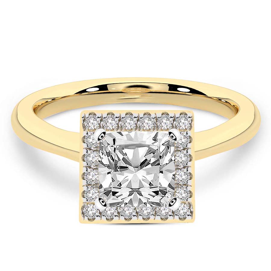 This Abigail Halo Ring is a Round shape ring Engagement type 18k Yellow Gold