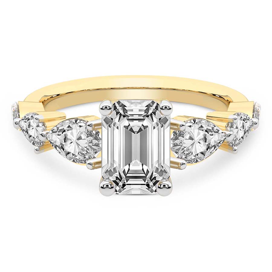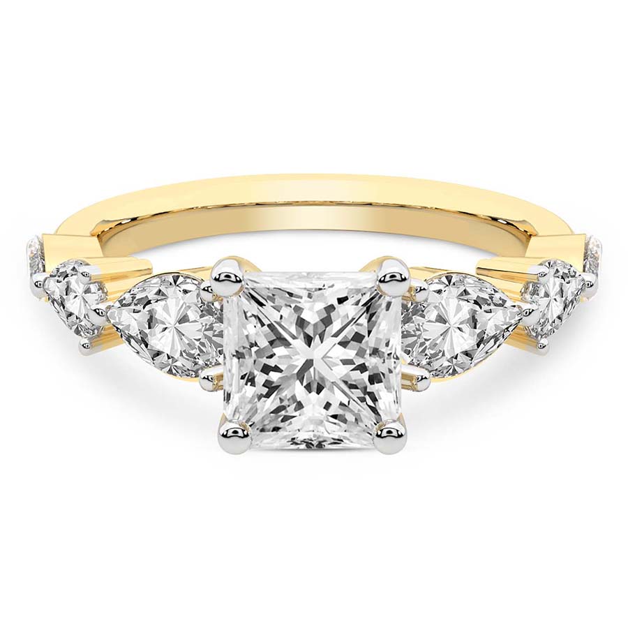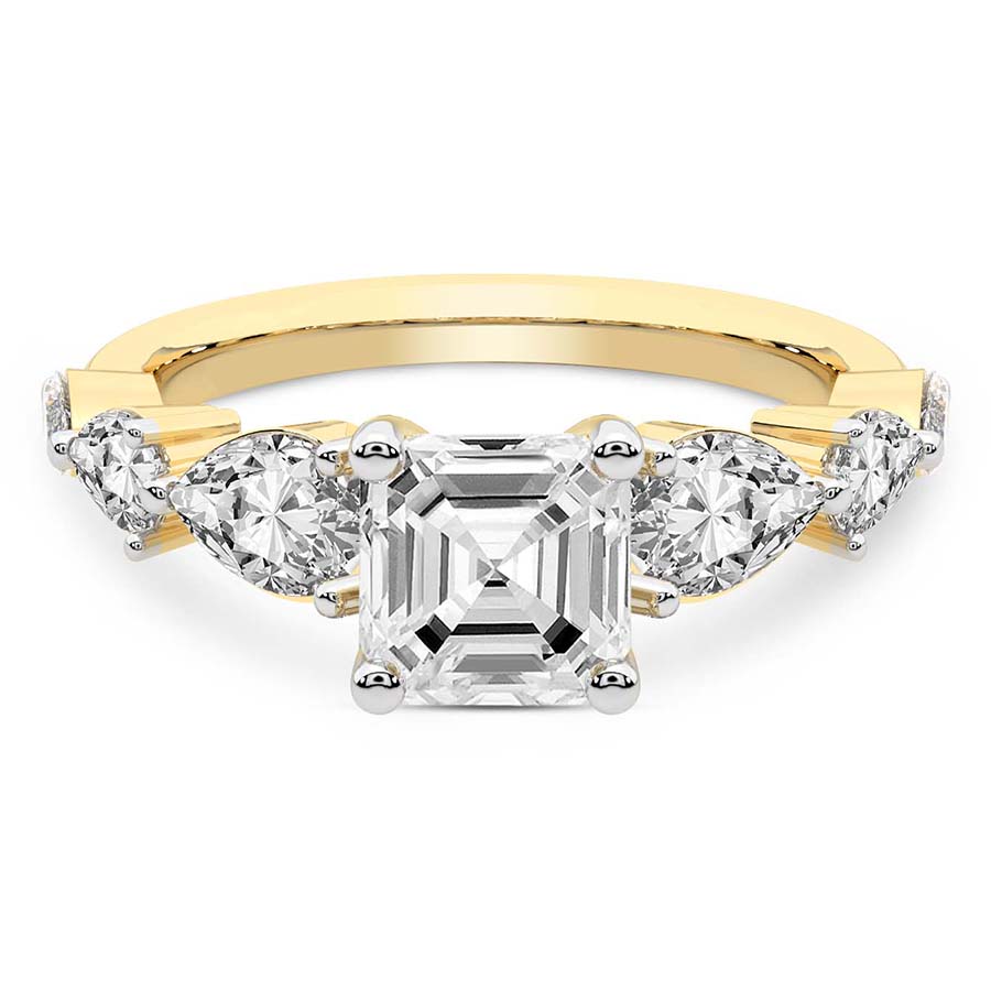 This Amelia Side Stone Ring is a Round shape ring Engagement type 18k Yellow Gold