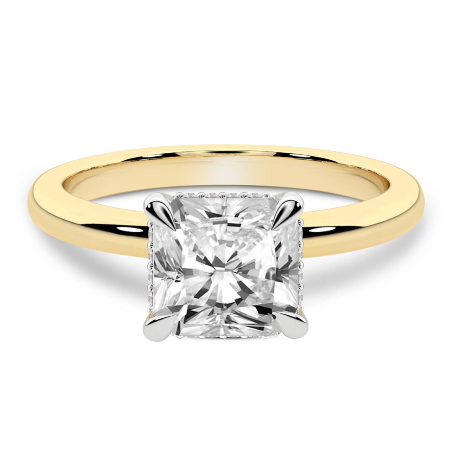 This Anna Hidden Halo Solitaire Diamond Ring is a Round shape ring Engagement type 18k Yellow Gold