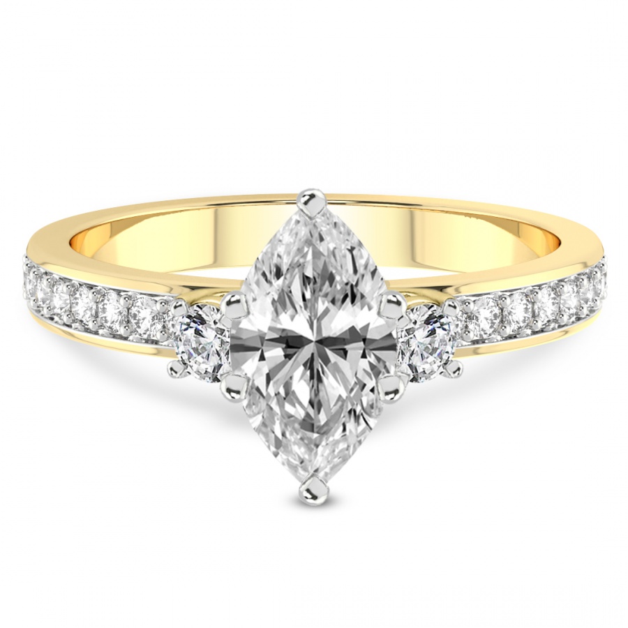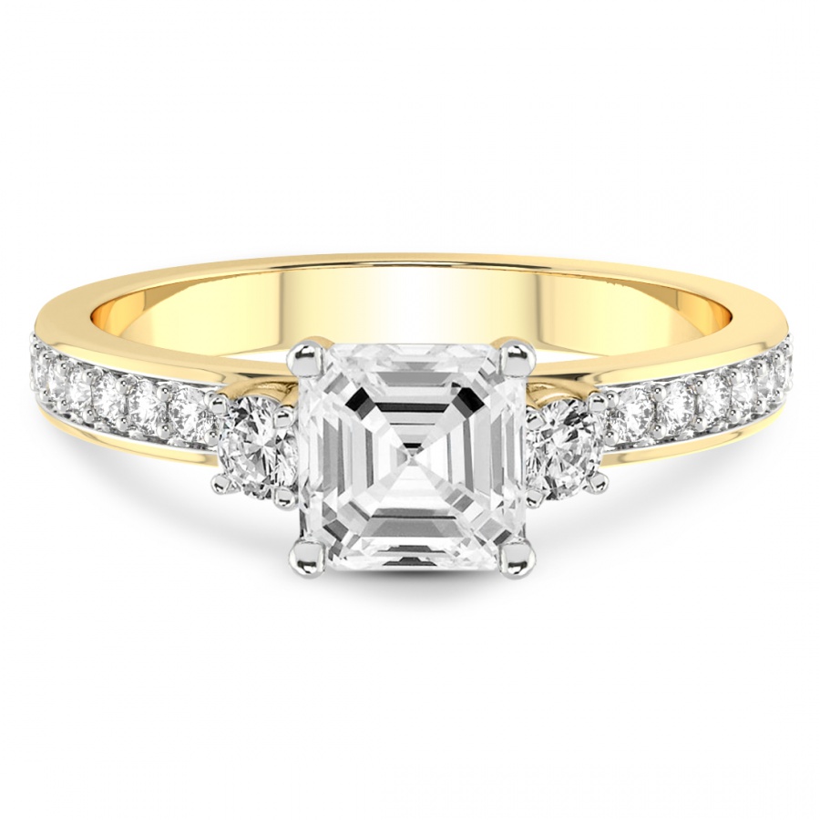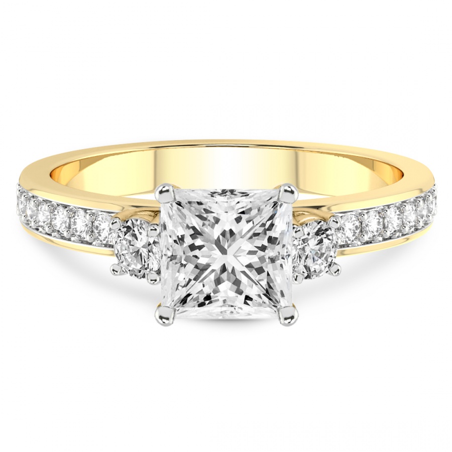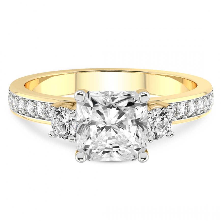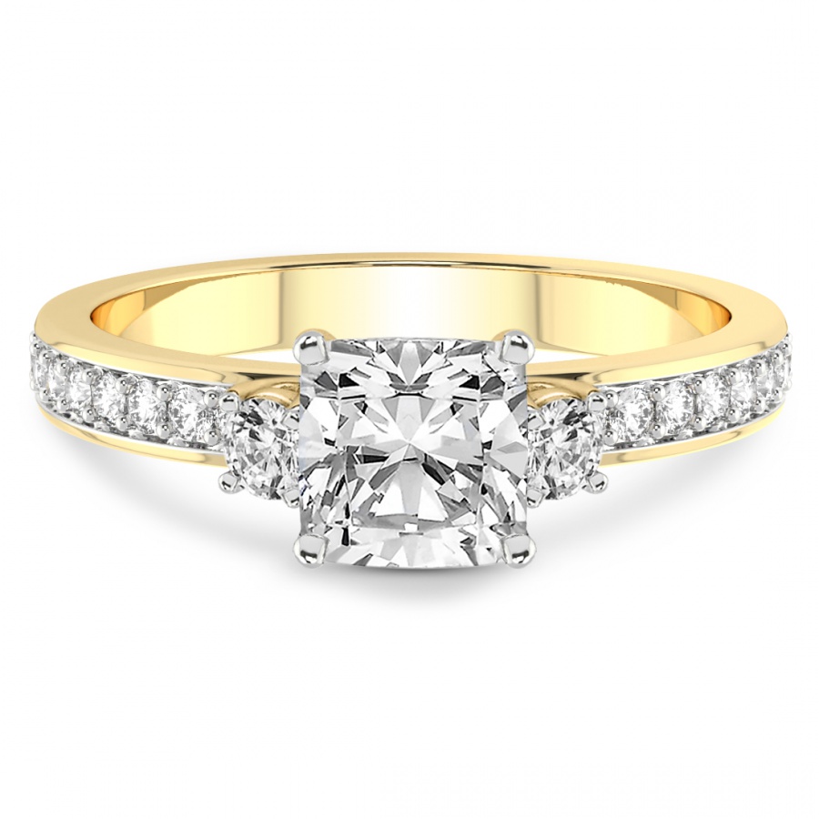 This Camila Three Stone Diamond Ring is a Round shape ring Engagement type 18k Yellow Gold