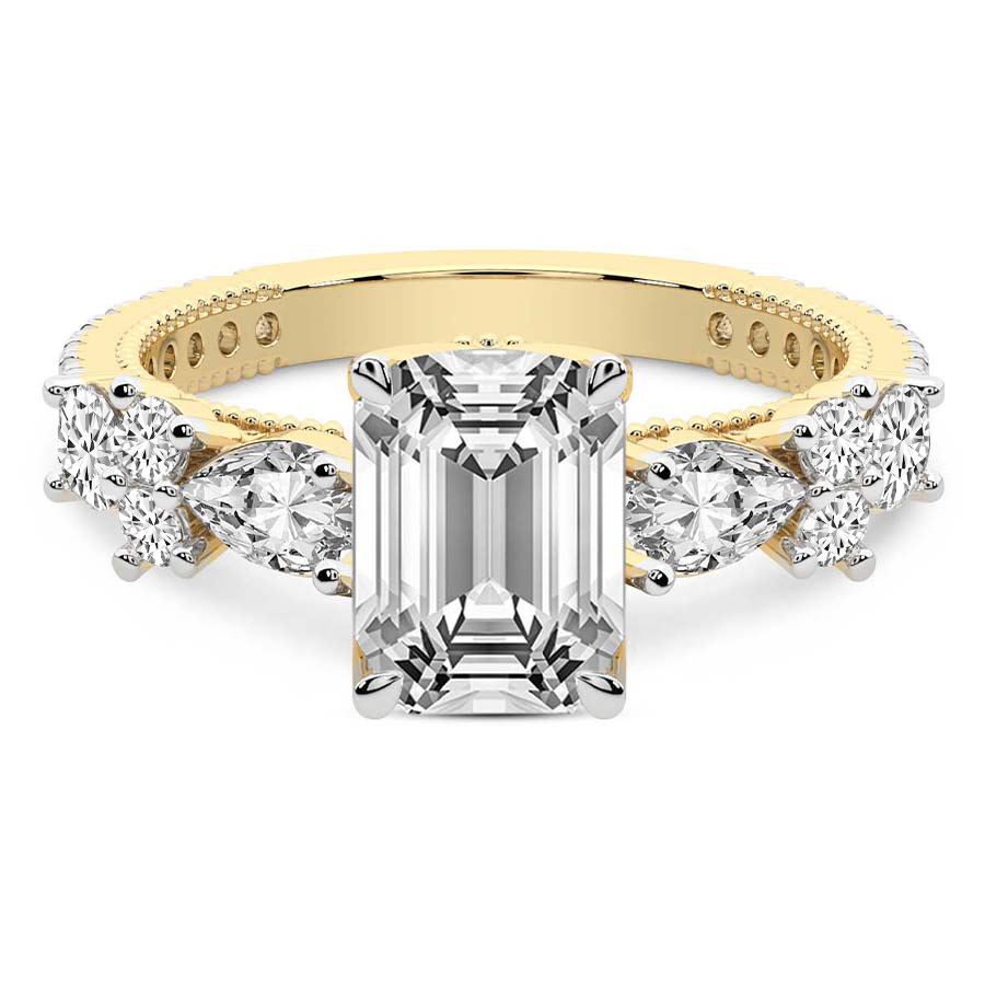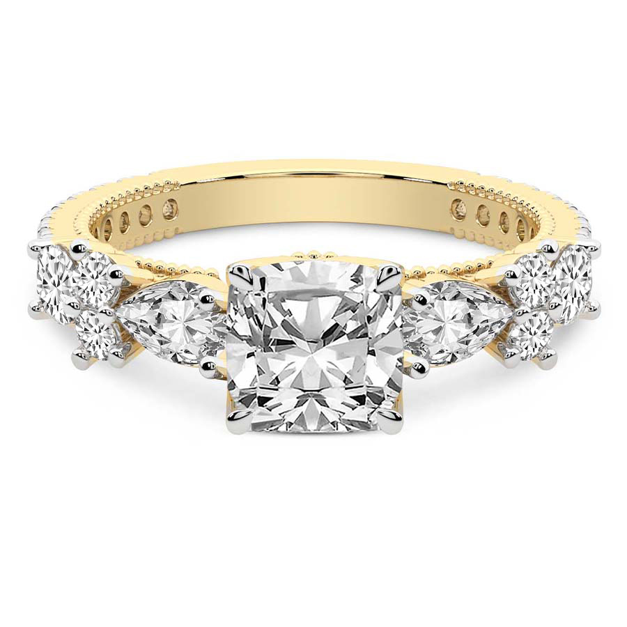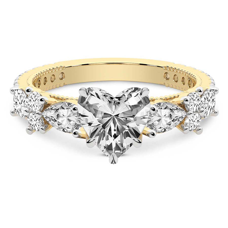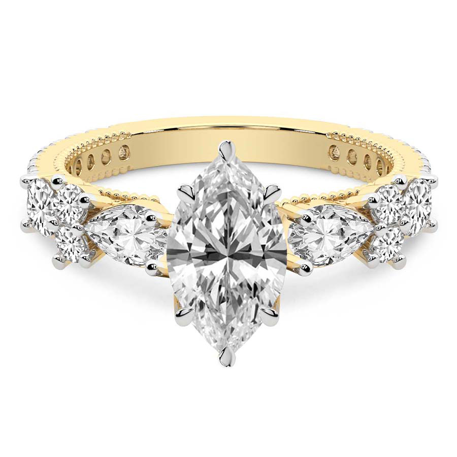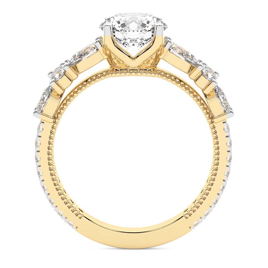 This Chloe Round & Pear Side Stone Ring is a Round shape ring Engagement type 18k Yellow Gold