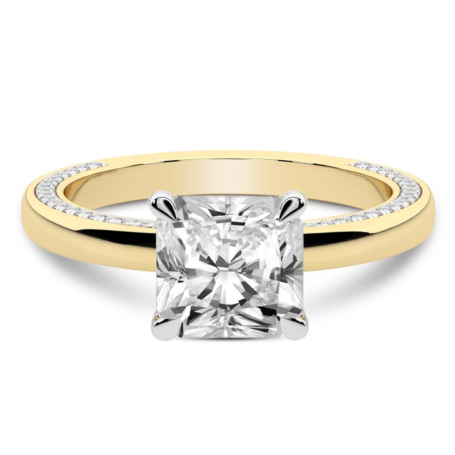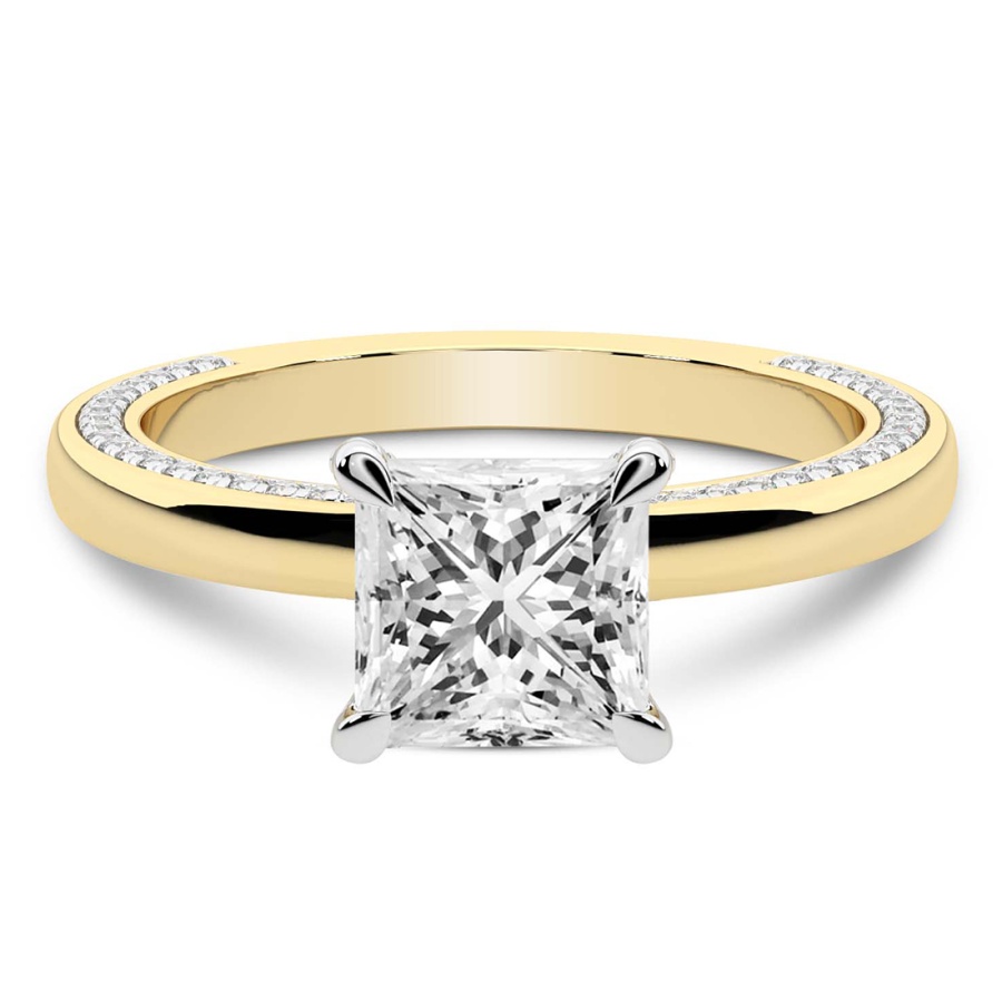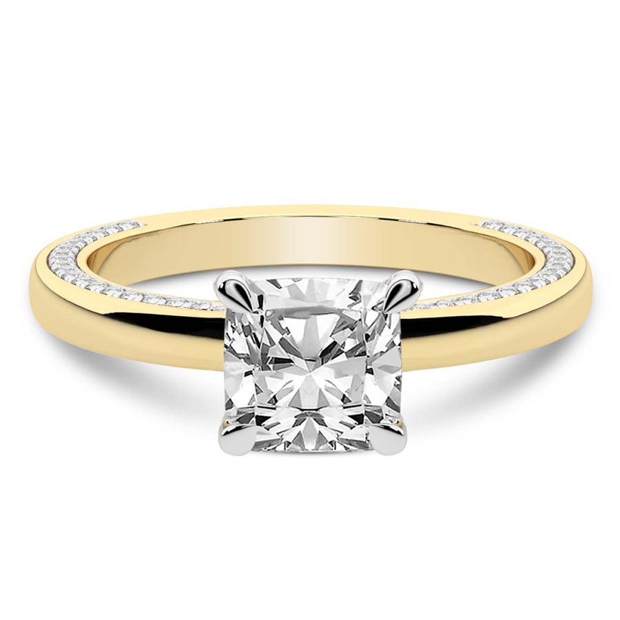This Cora Diamond Studded Petite Solitaire Diamond Ring is a Round shape ring Engagement type 18k Yellow Gold