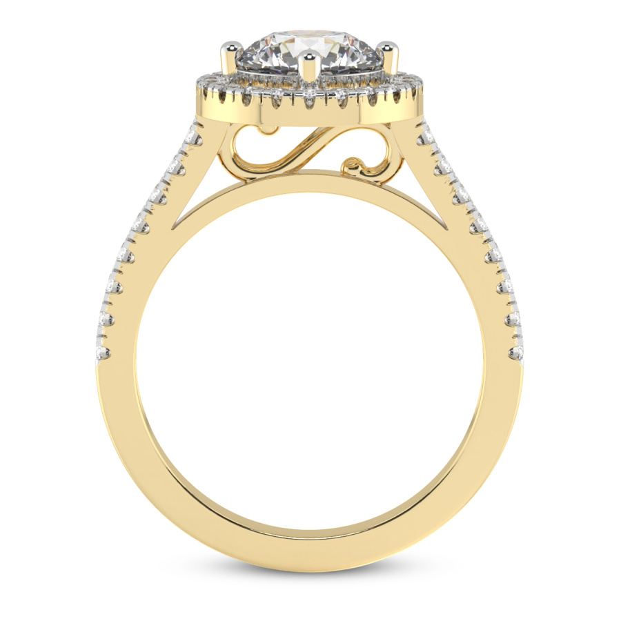 This Jennie Sun Halo Diamond Ring is a Round shape ring Engagement type 18k Yellow Gold