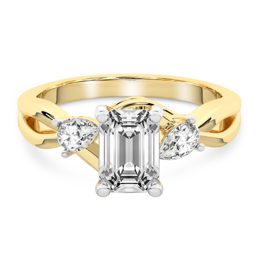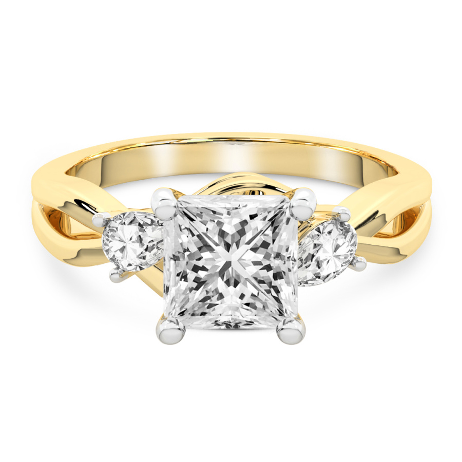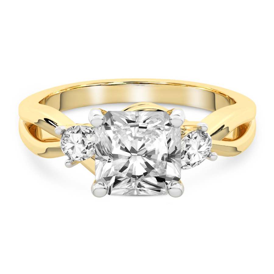 This Julia Three Stone Bypass Diamond Ring is a Round shape ring Engagement type 18k Yellow Gold