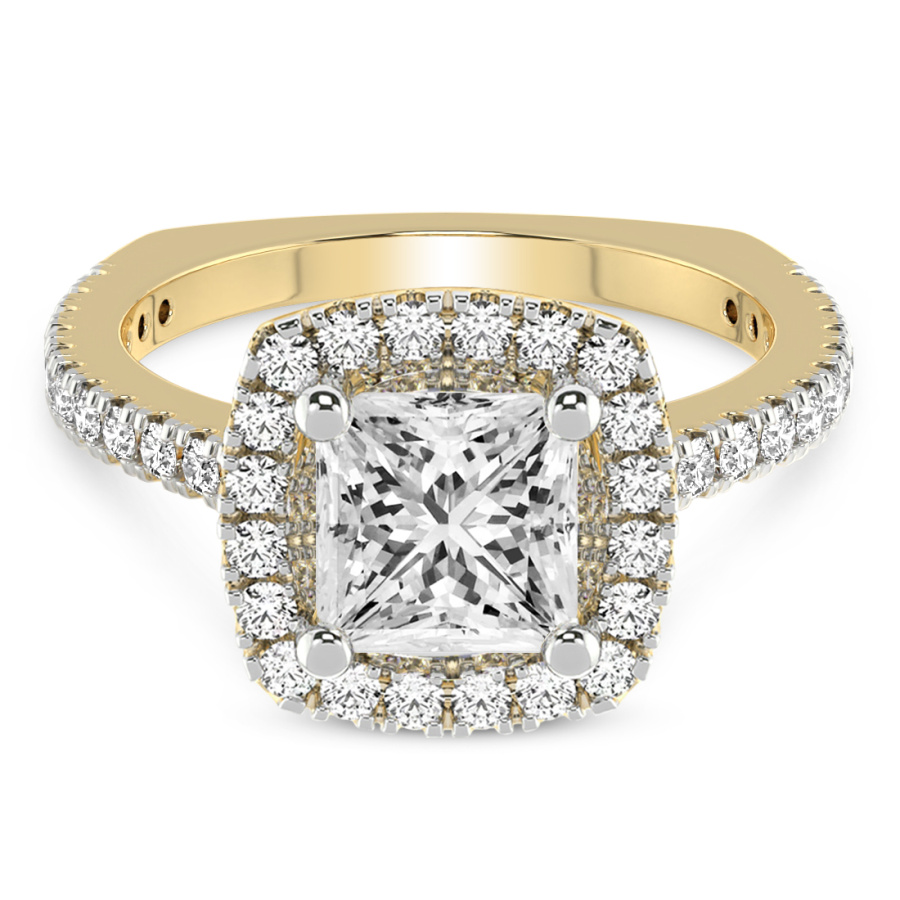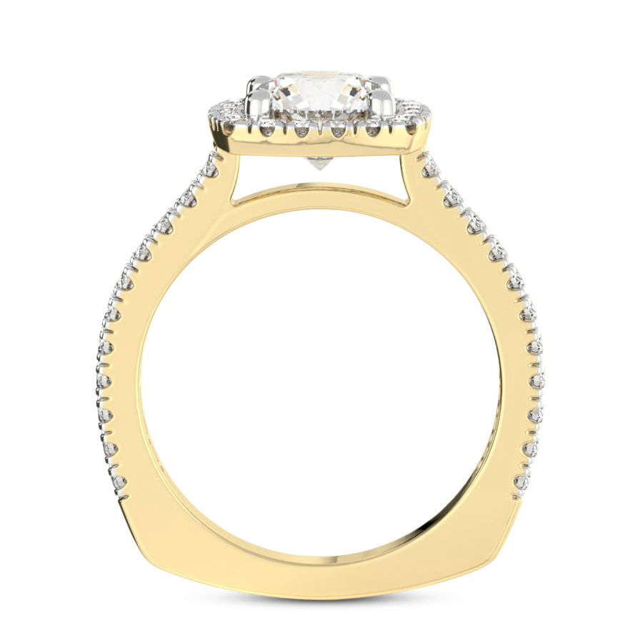 This Katherine Euro Shank Halo Diamond Ring is a Round shape ring Engagement type 18k Yellow Gold