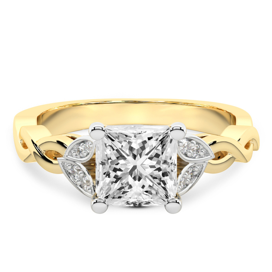 This Melanie Side Stone Diamond Ring is a Round shape ring Engagement type 18k Yellow Gold