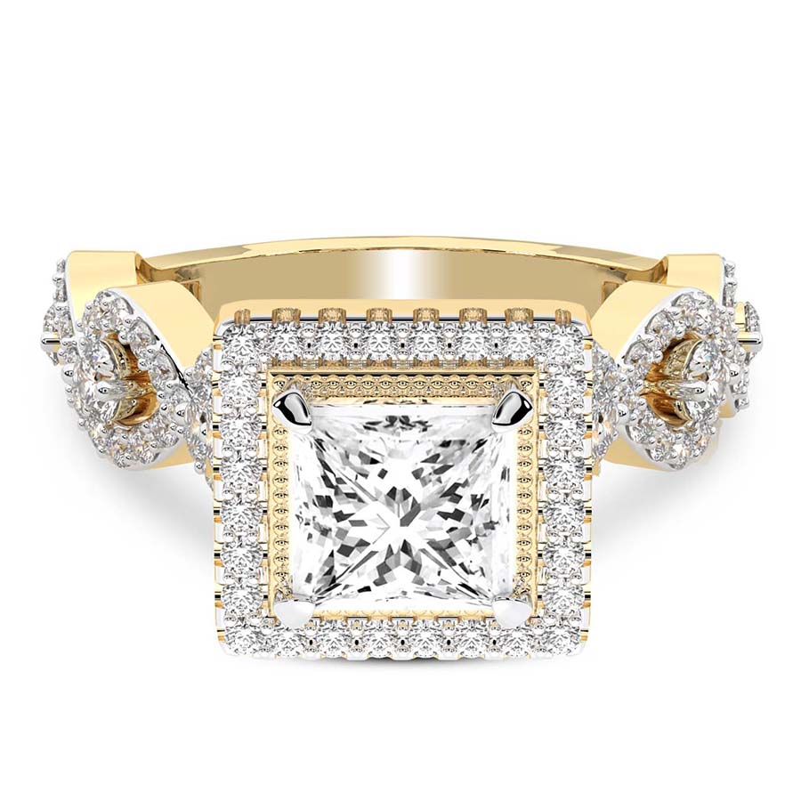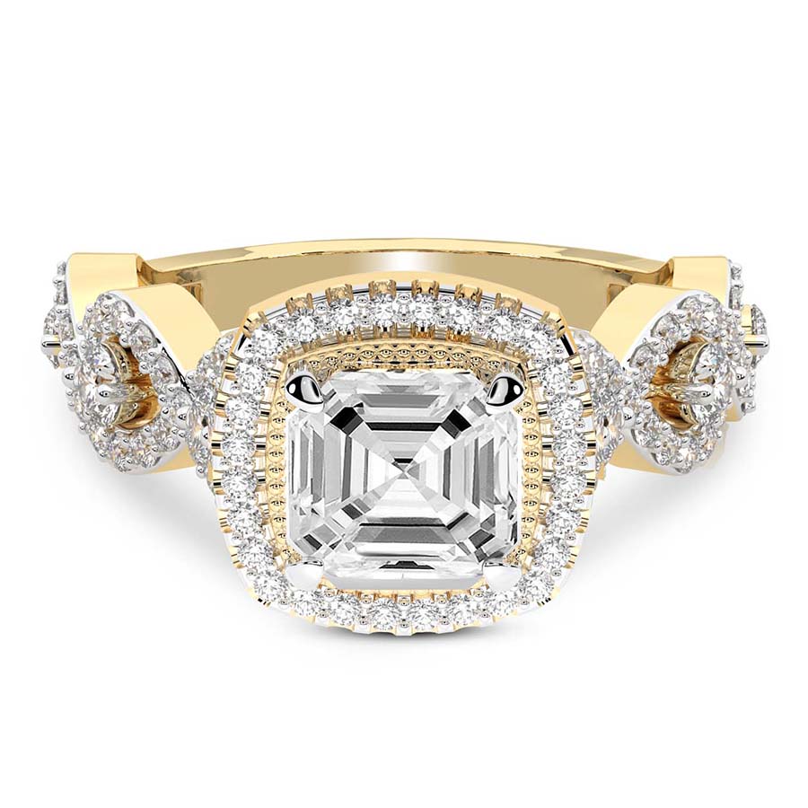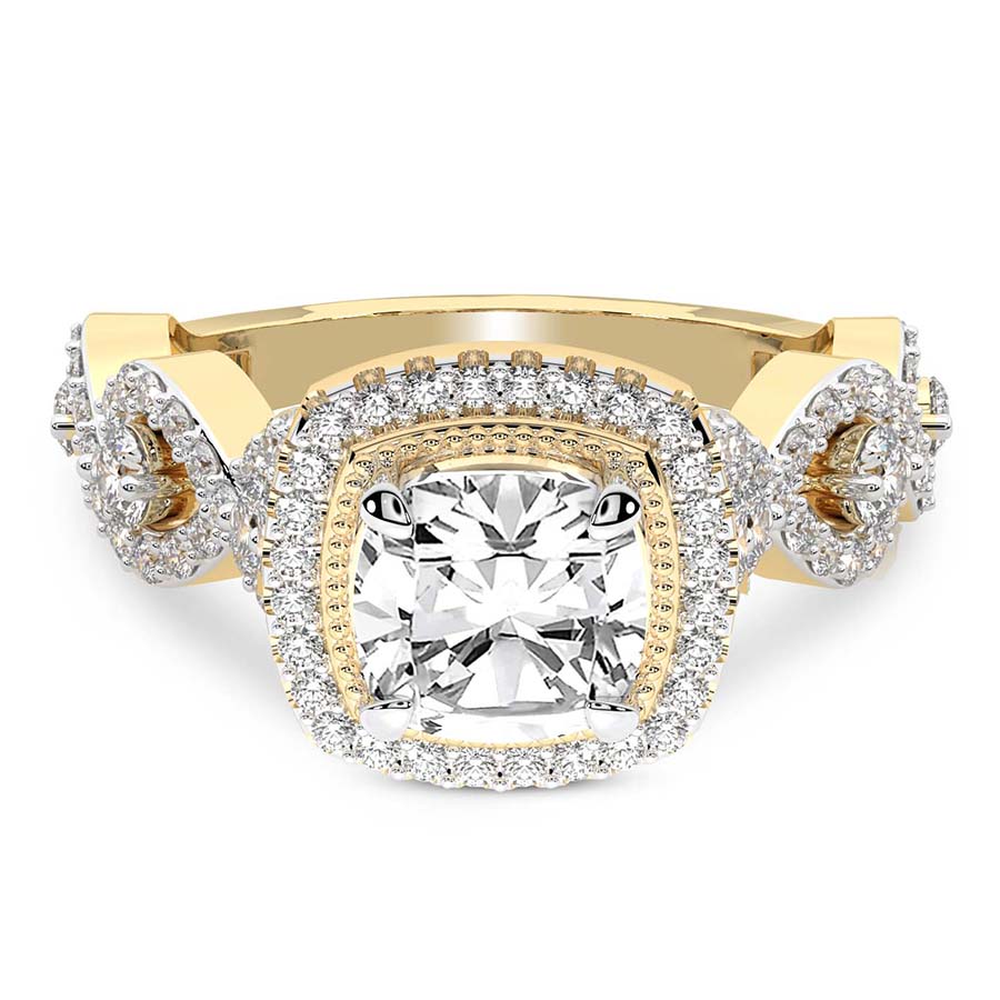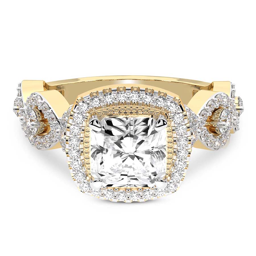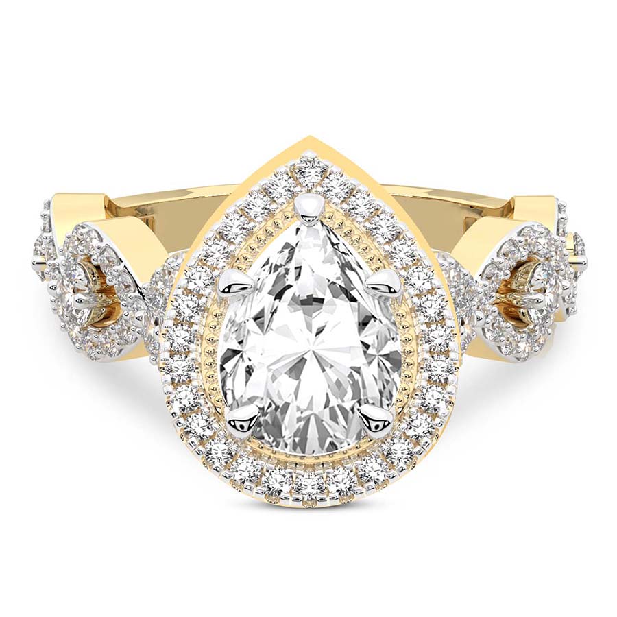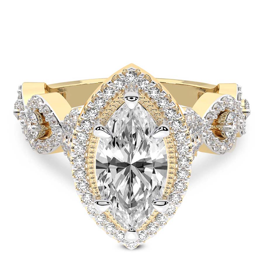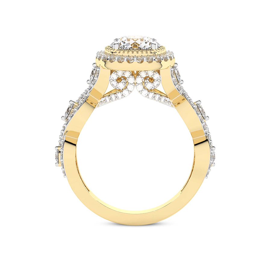 This Mila Criss Cross Halo Diamond Ring is a Round shape ring Engagement type 18k Yellow Gold