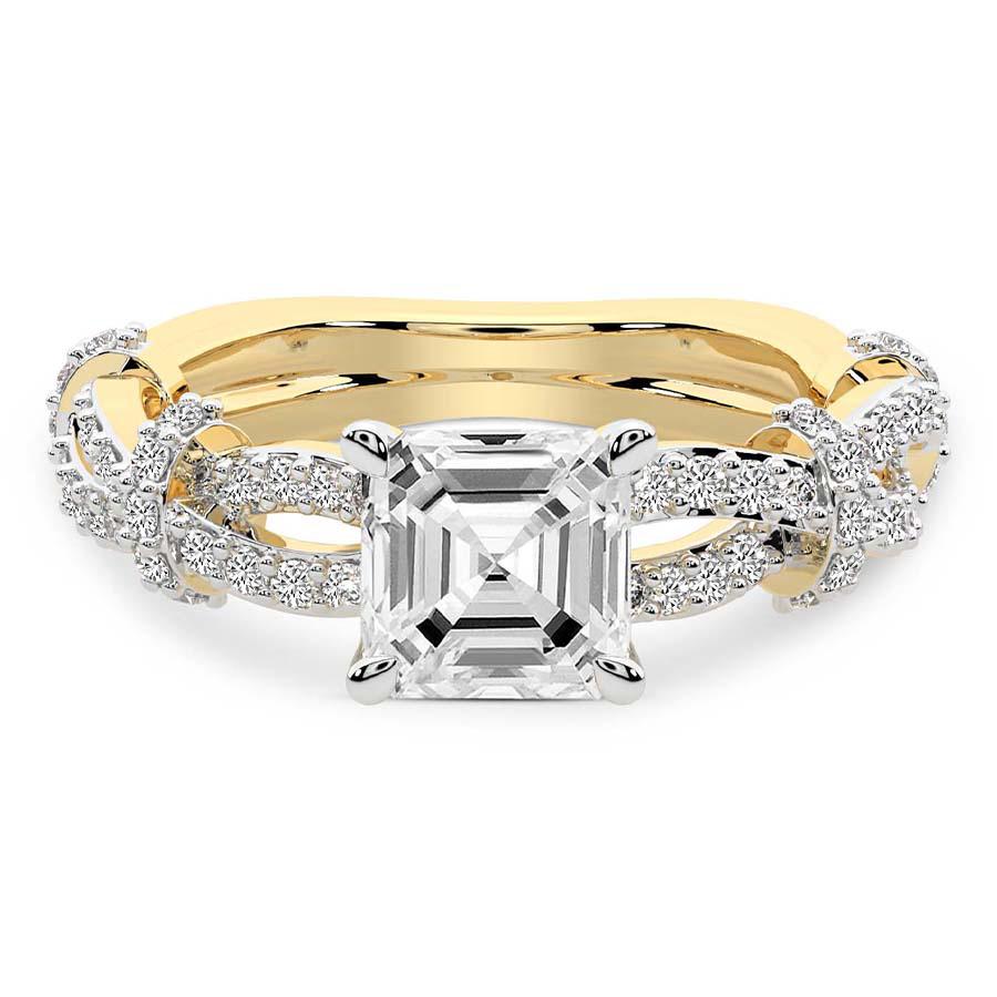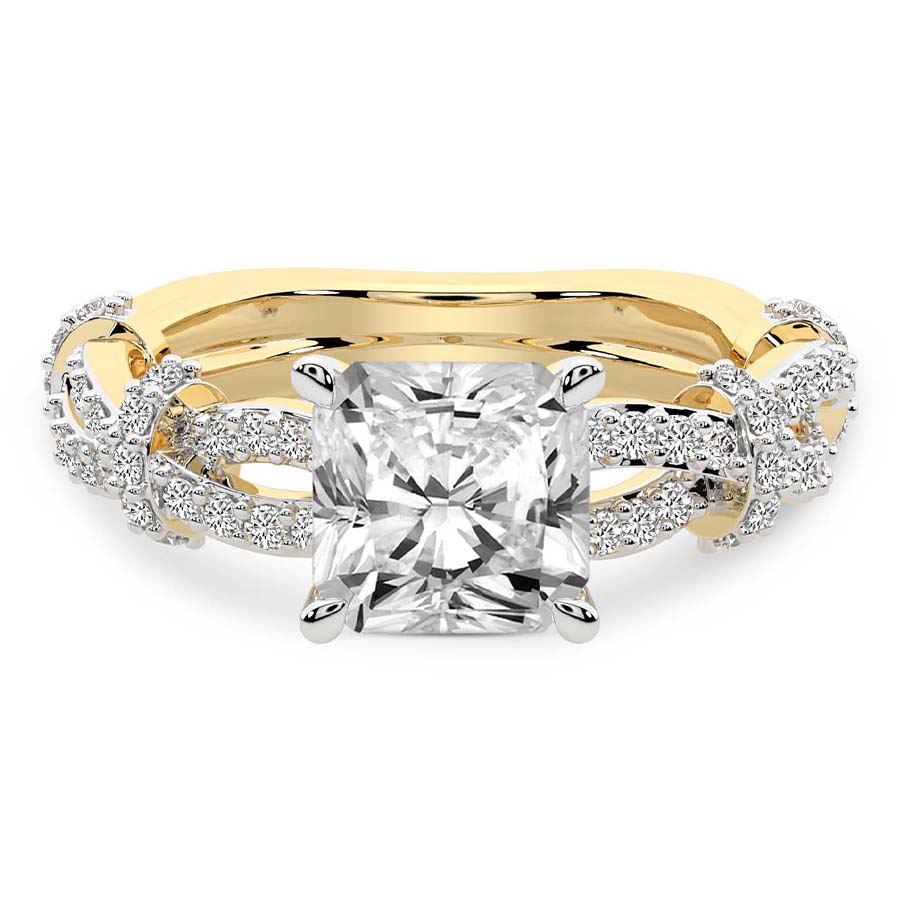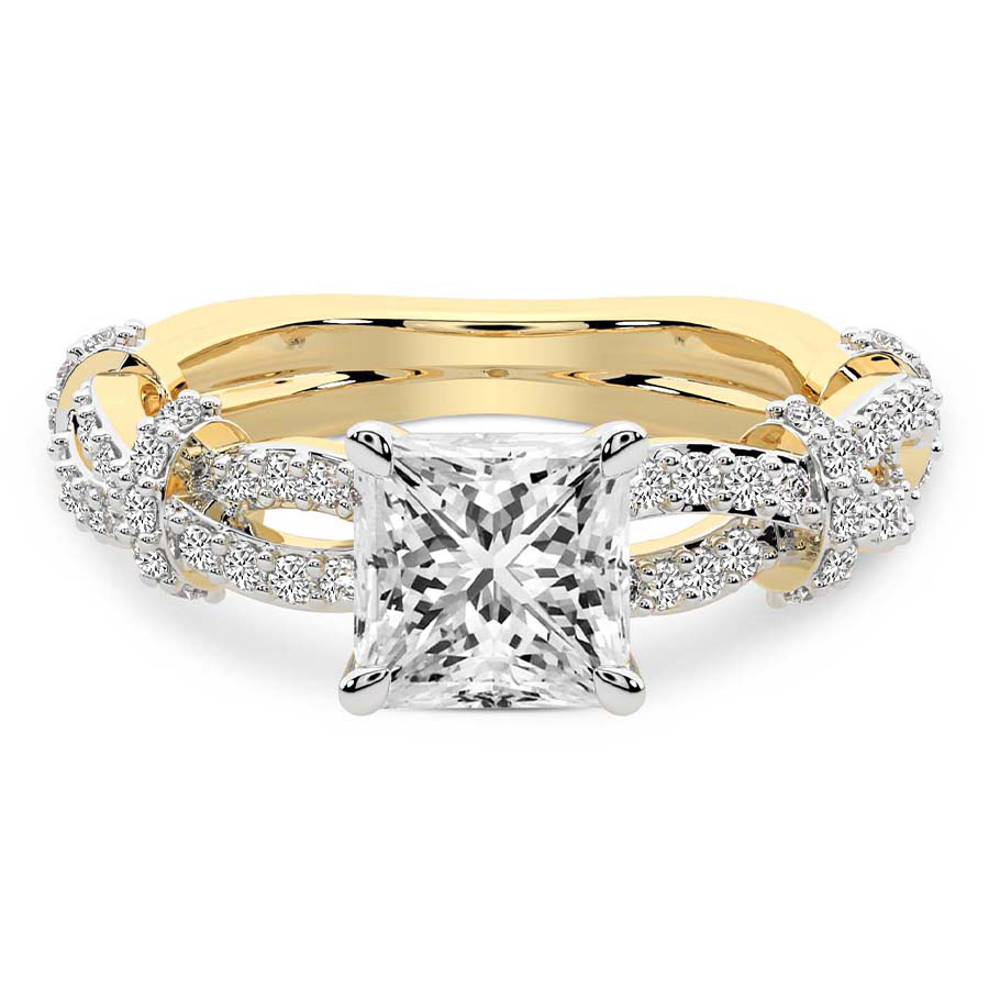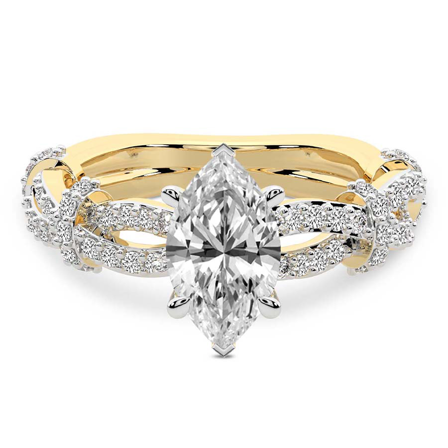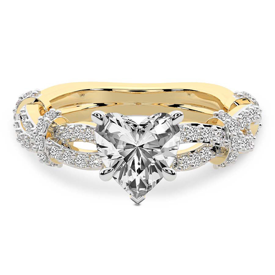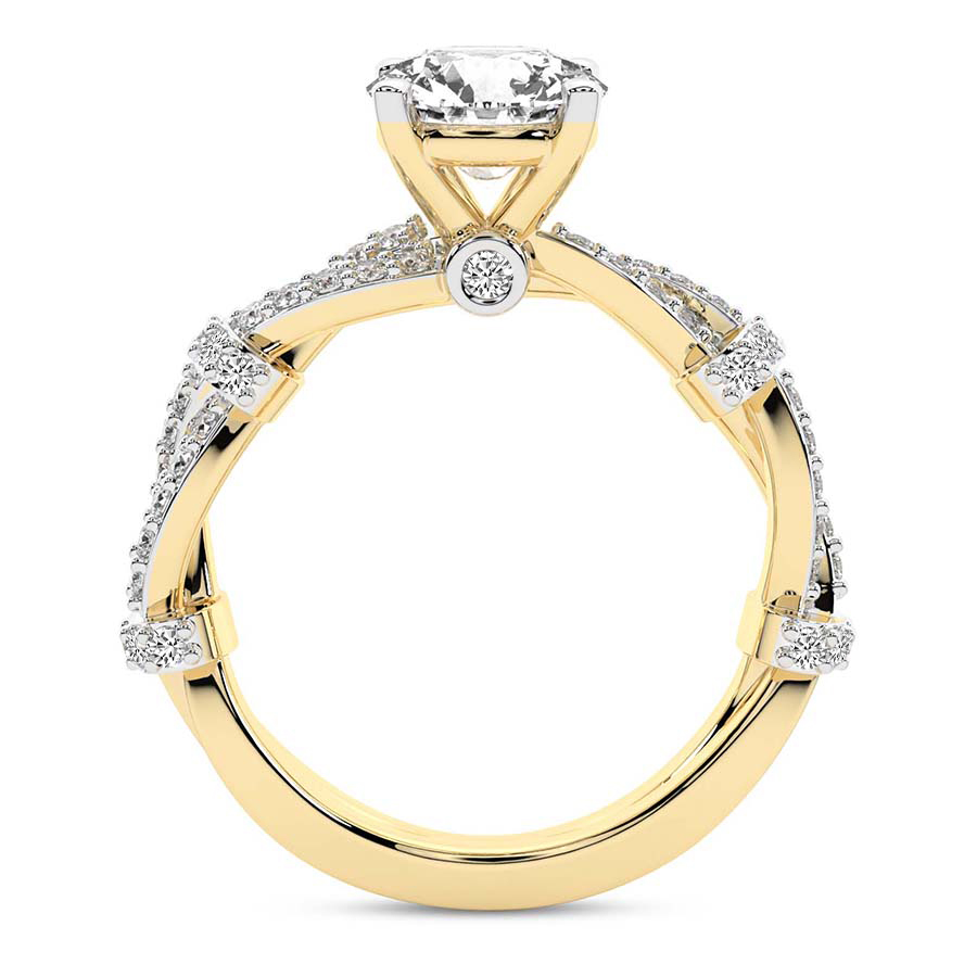 This Pauline Double Twist Side Stone Ring is a Round shape ring Engagement type 18k Yellow Gold