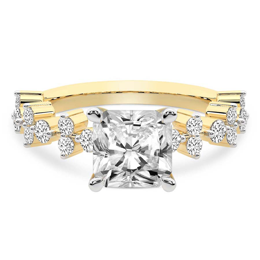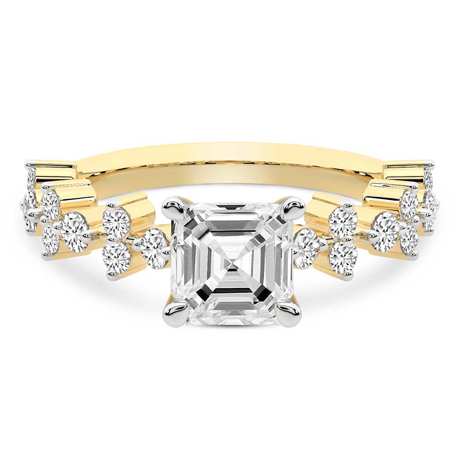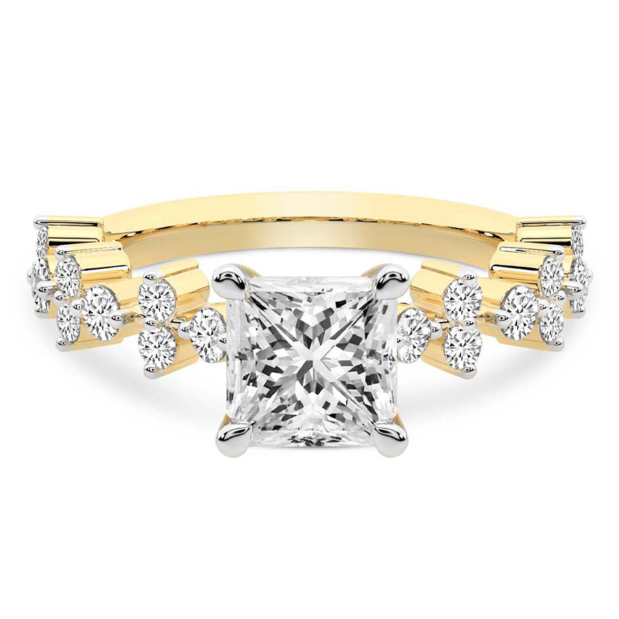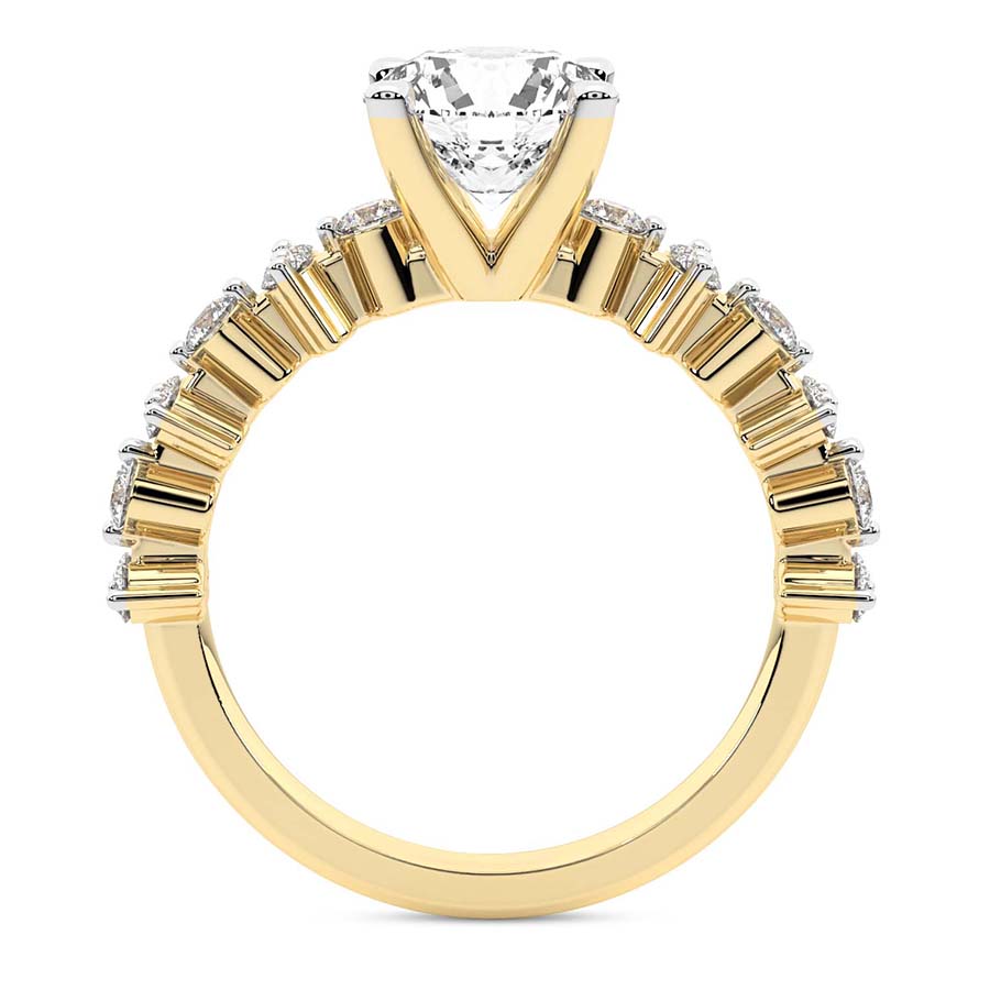 This Sadie Side Stone Ring is a Round shape ring Engagement type 18k Yellow Gold