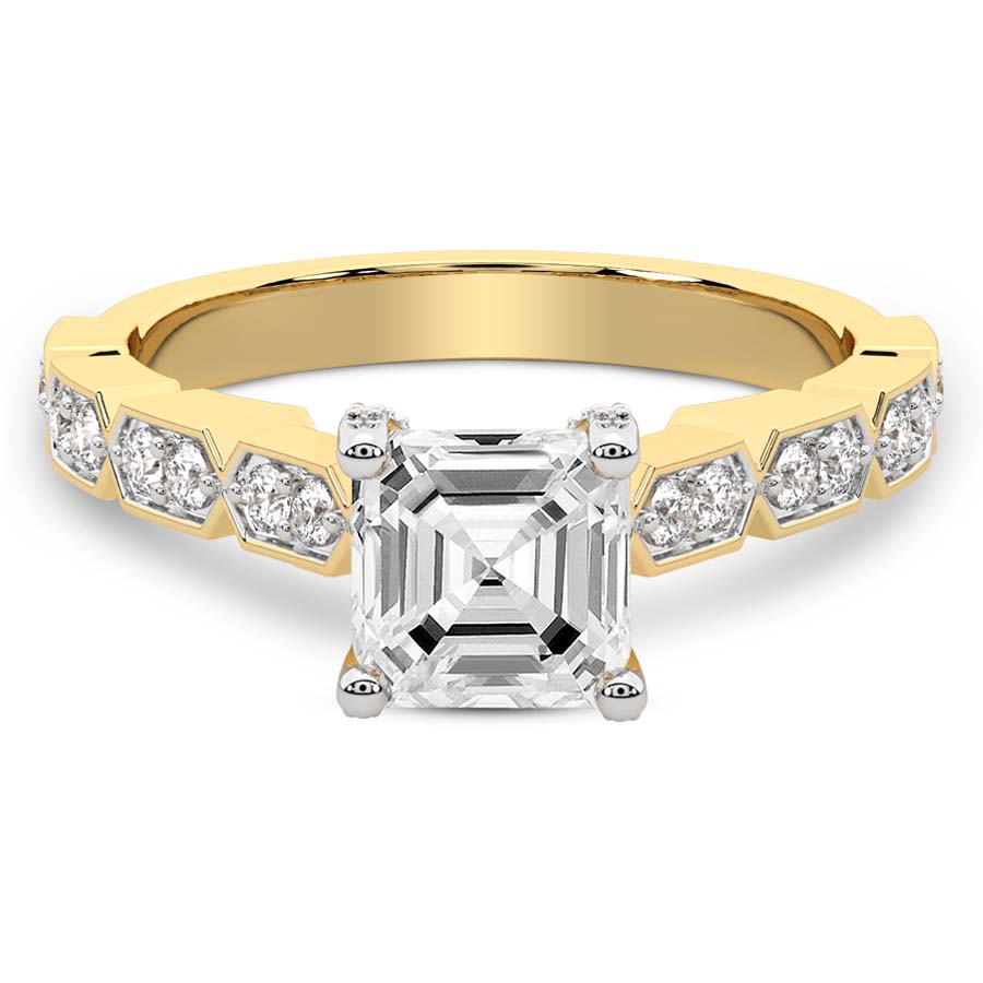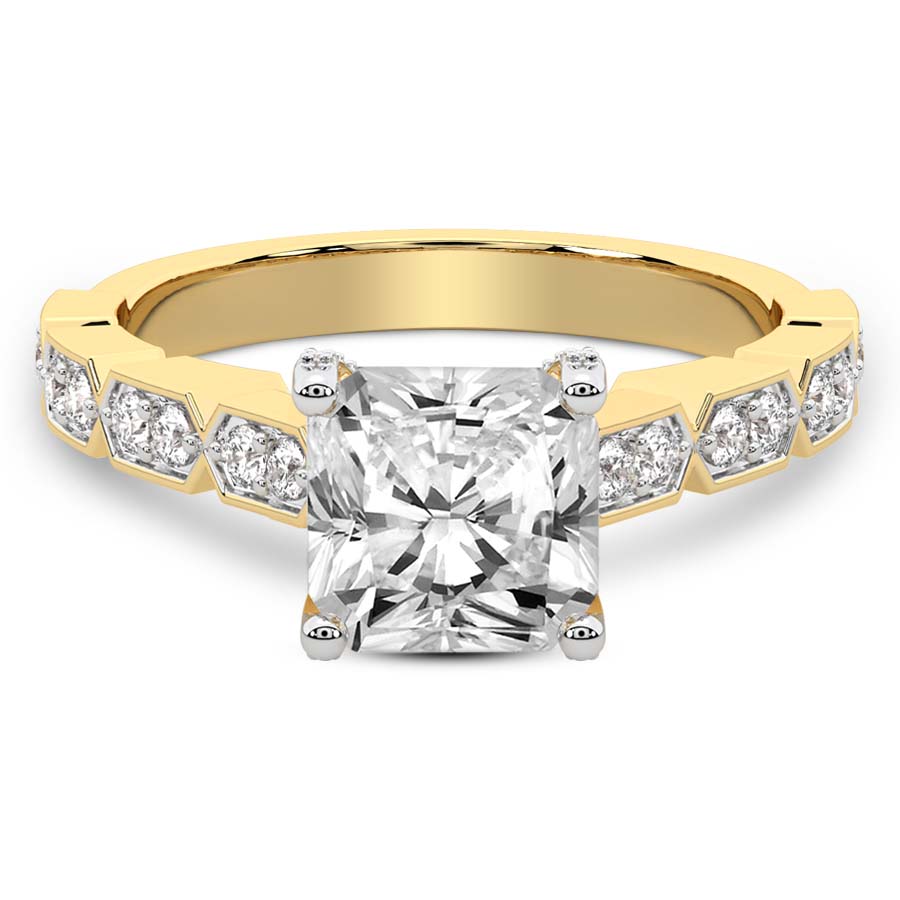 This Tamsin Side Stone Diamond Ring is a Round shape ring Engagement type 18k Yellow Gold